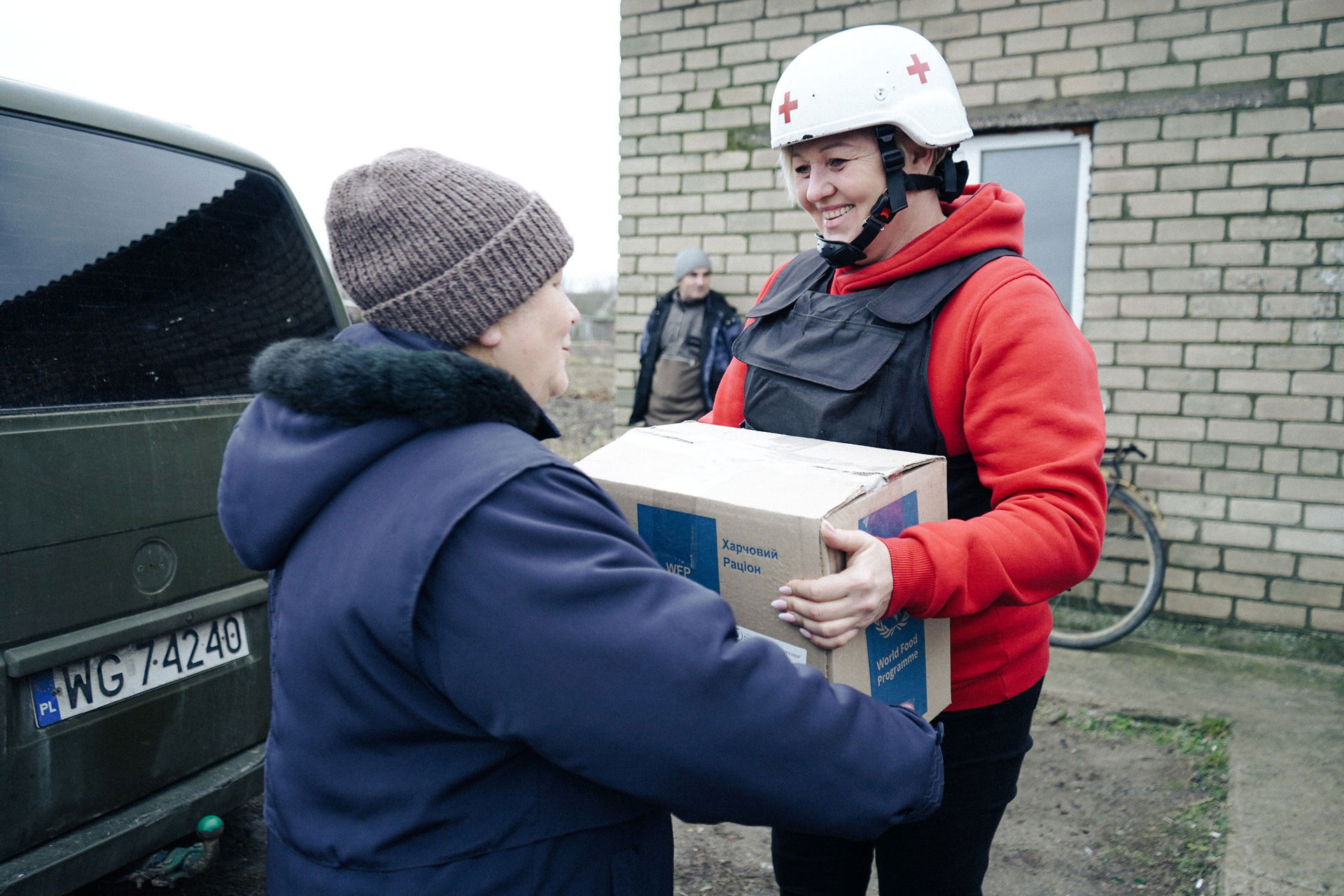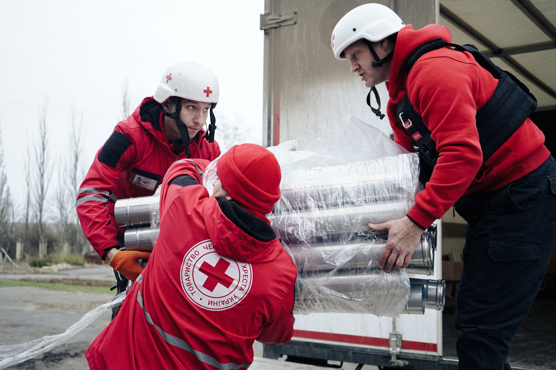 Ukrainska Röda Korsets anställda och frivilliga levererar mat, värmeaggregat, rent vatten och andra förnödenheter till människor som bor vid frontlinjen och till dem som behöver mest hjälp.