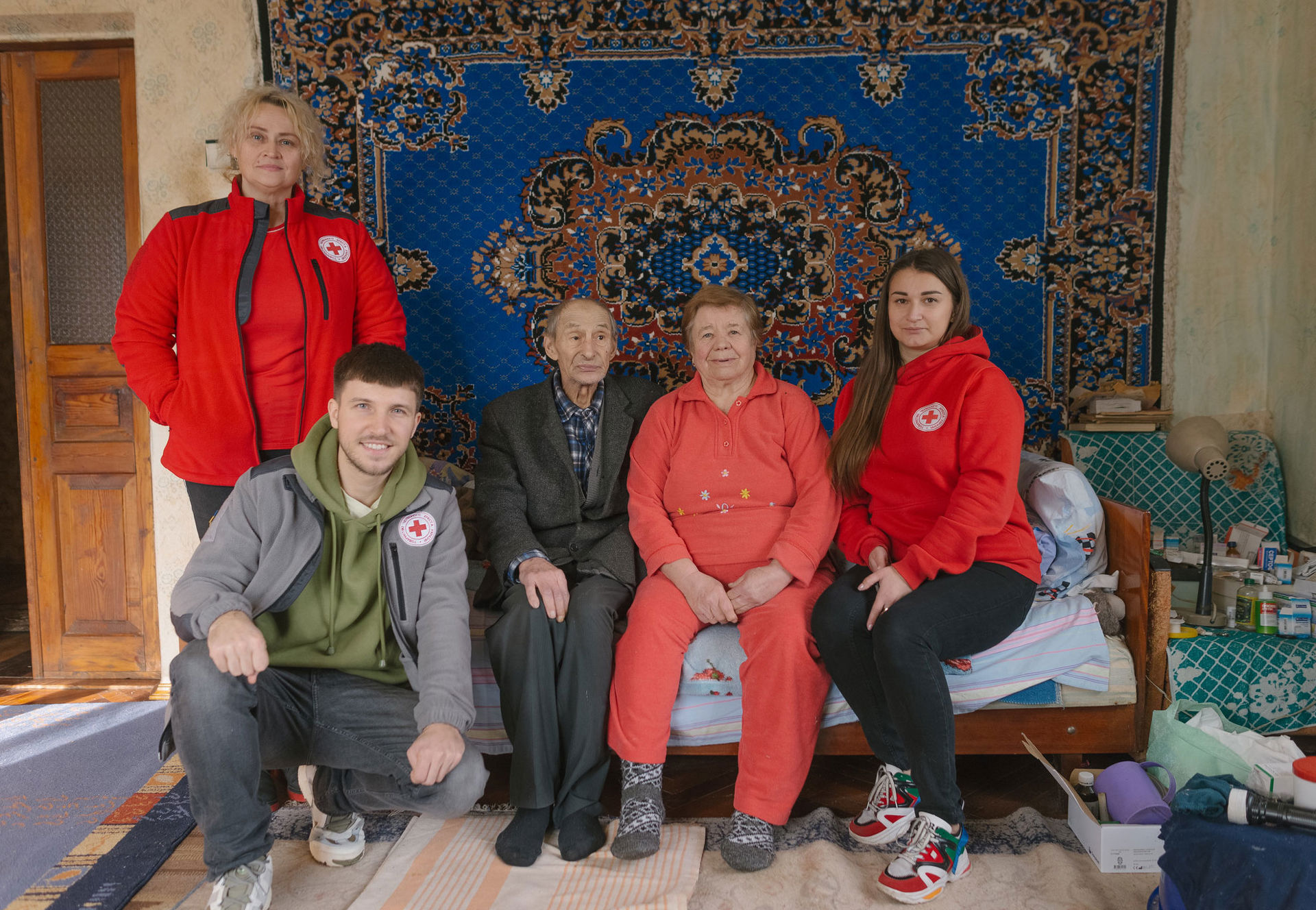 Ukrainska Röda Korsets frivilliga och anställda finns där hjälp behövs: De ger skadade första hjälpen, evakuerar människor i säkerhet, erbjuder psykiskt stöd och ger hemvård samt hälso- och sjukvård till äldre personer som blivit ensamma i avlägsna byar. Striderna, som har pågått i tre år, orsakar mänskligt lidande i såväl Ukraina som dess närområden.